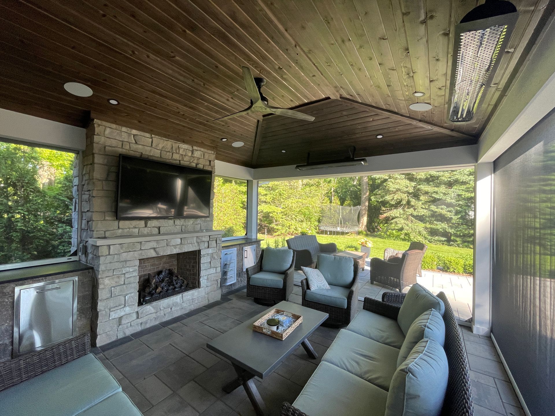 Transform your backyard into the ultimate outdoor living room with Creative Design Build Associates. Imagine a cozy space where you can enjoy romantic evenings by the fireplace or catch the latest sporting event with family and friends, complete with a television. Our design expertise ensures your outdoor area features comfortable patio furniture and elegant can curtains, creating a welcoming atmosphere that rivals your indoor living space.
