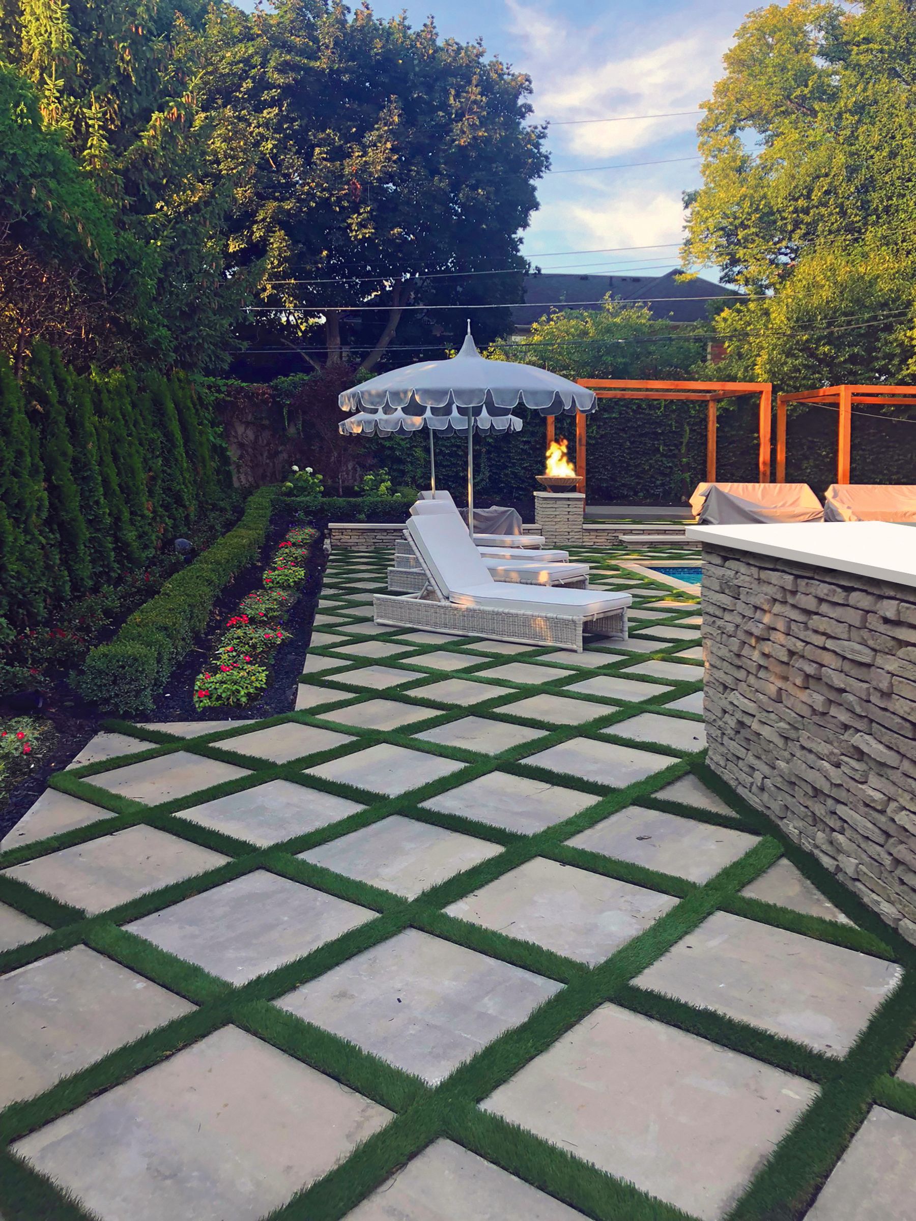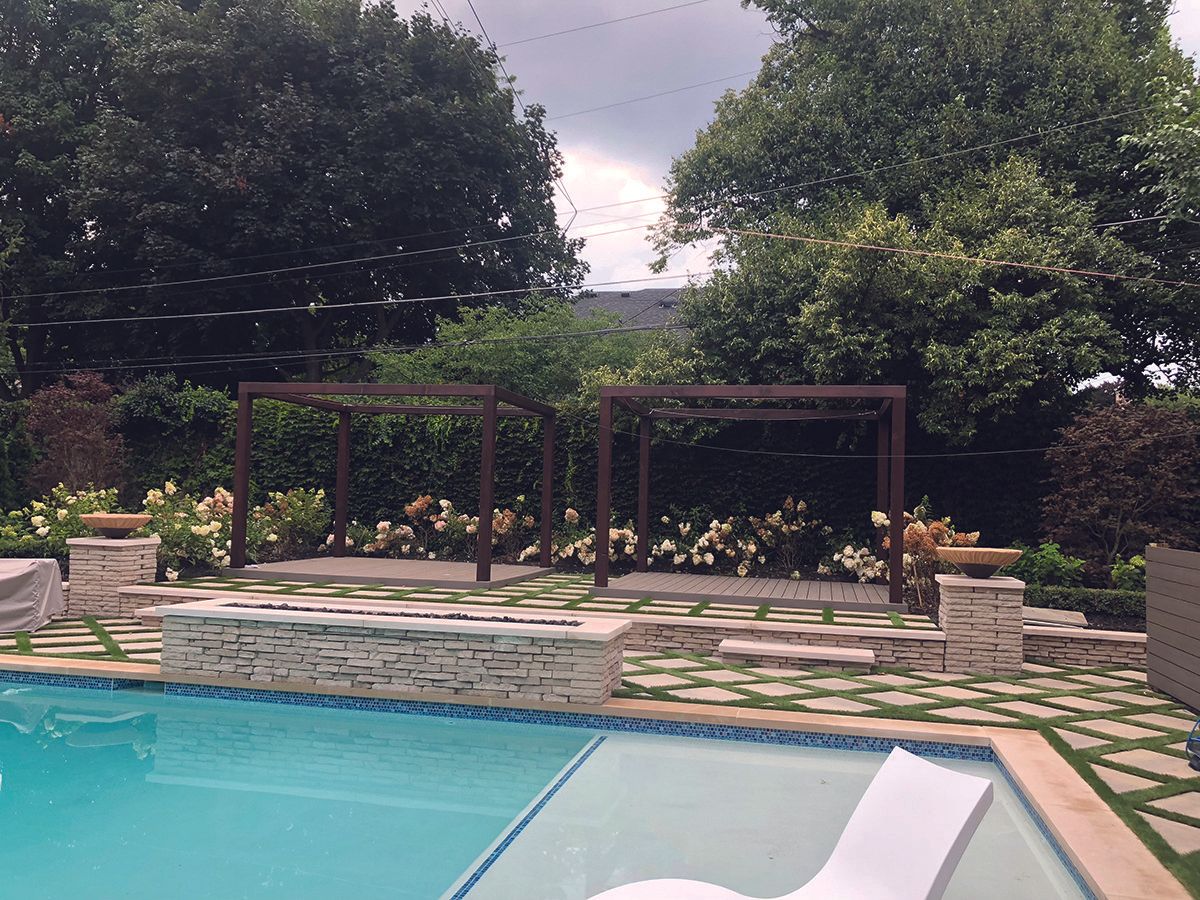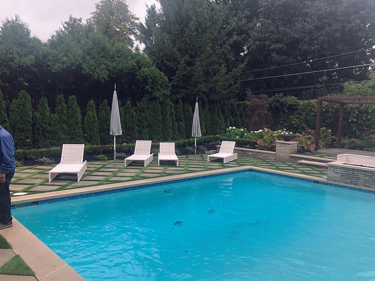 Some of the key features of this Grosse Pointe residential project included the landscaping, the surrounding areas of the swimming pool & walkways featuring artificial grass. No job would be complete with out a fountain and benches.